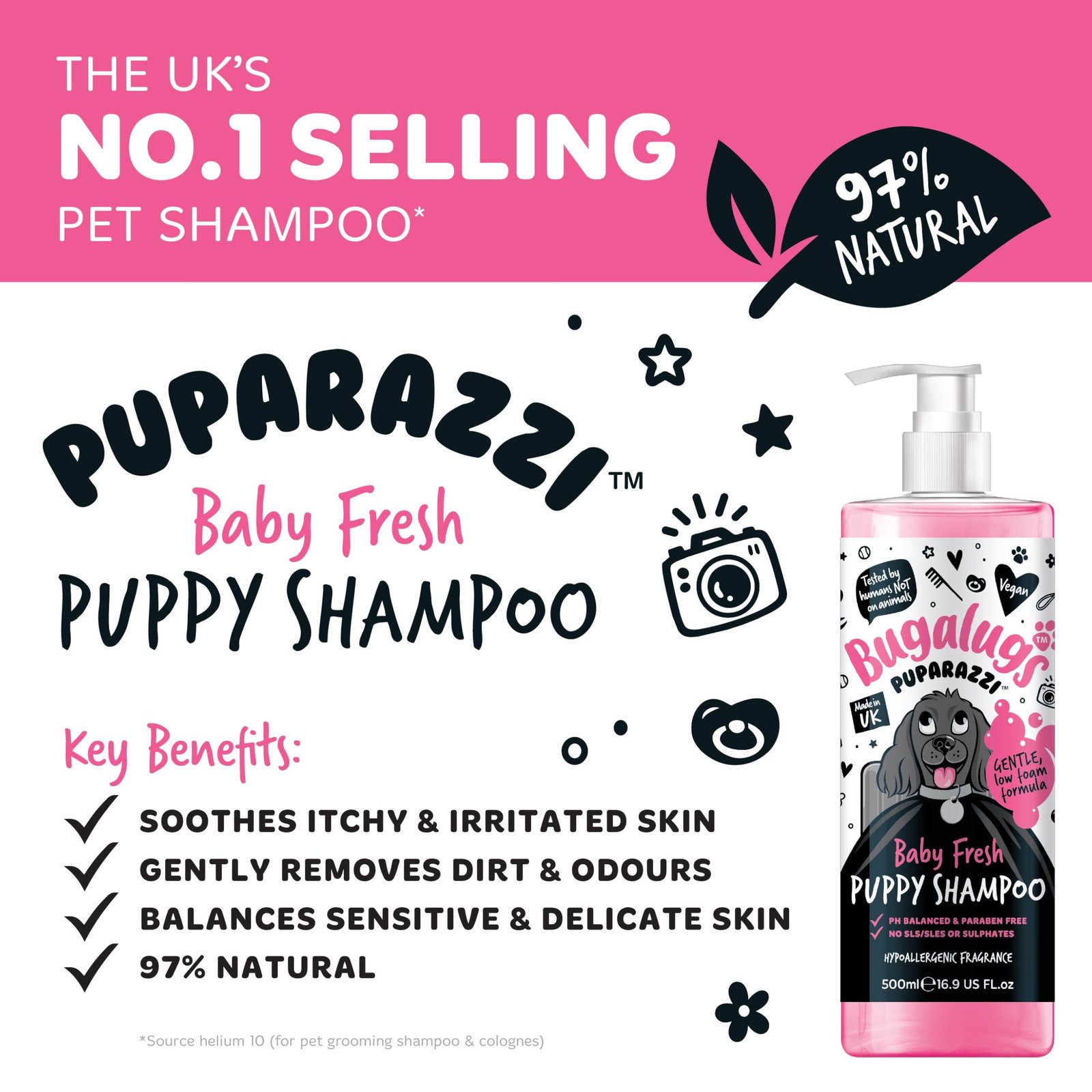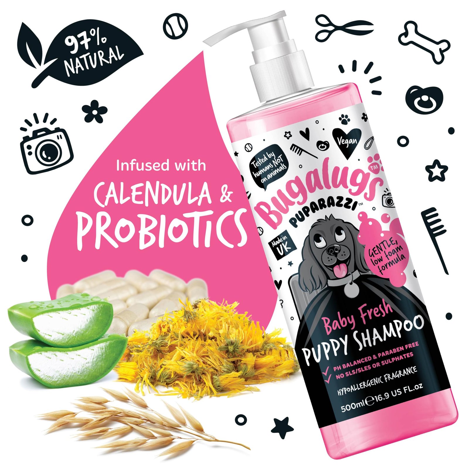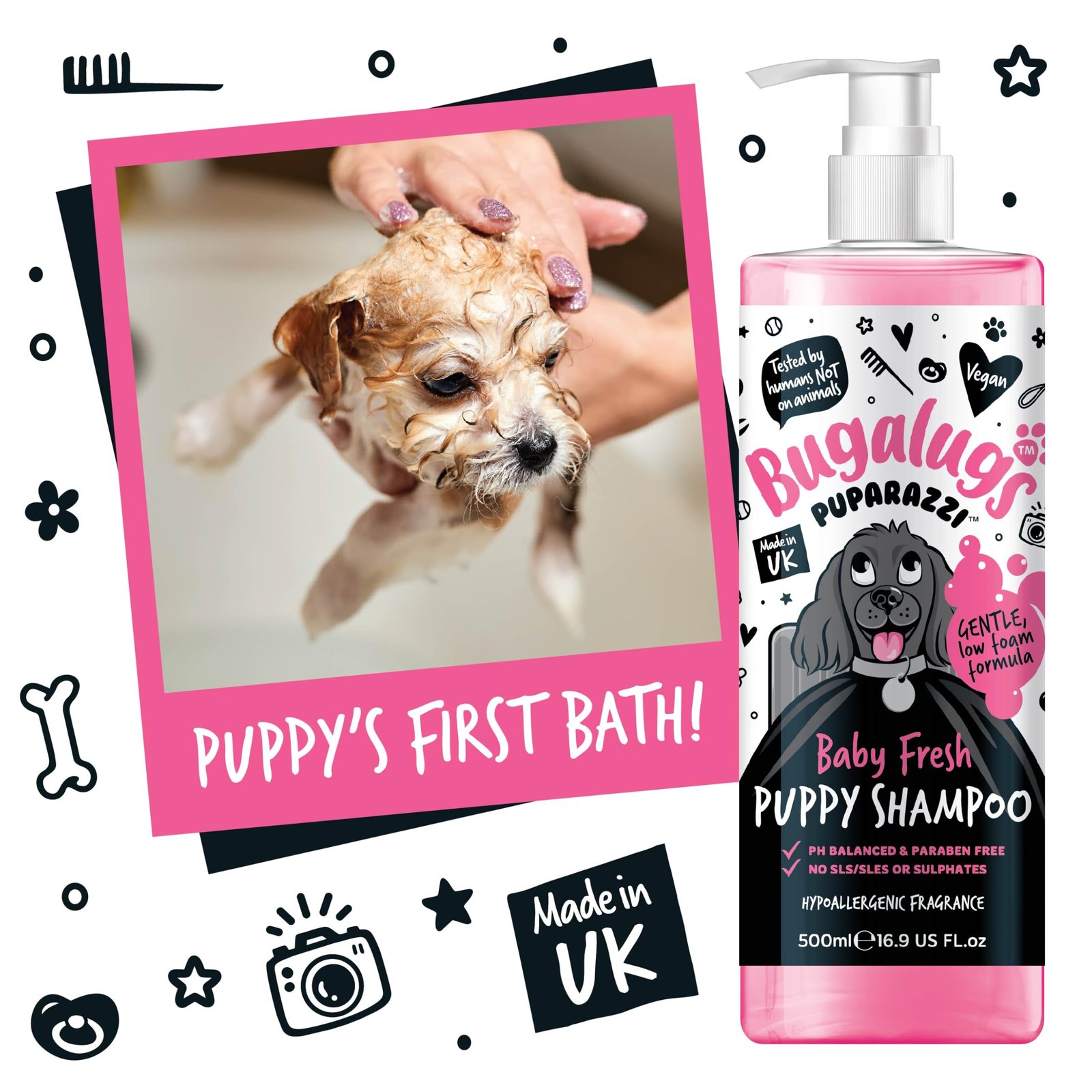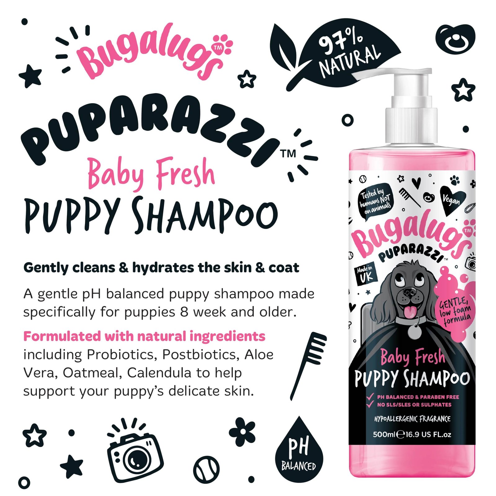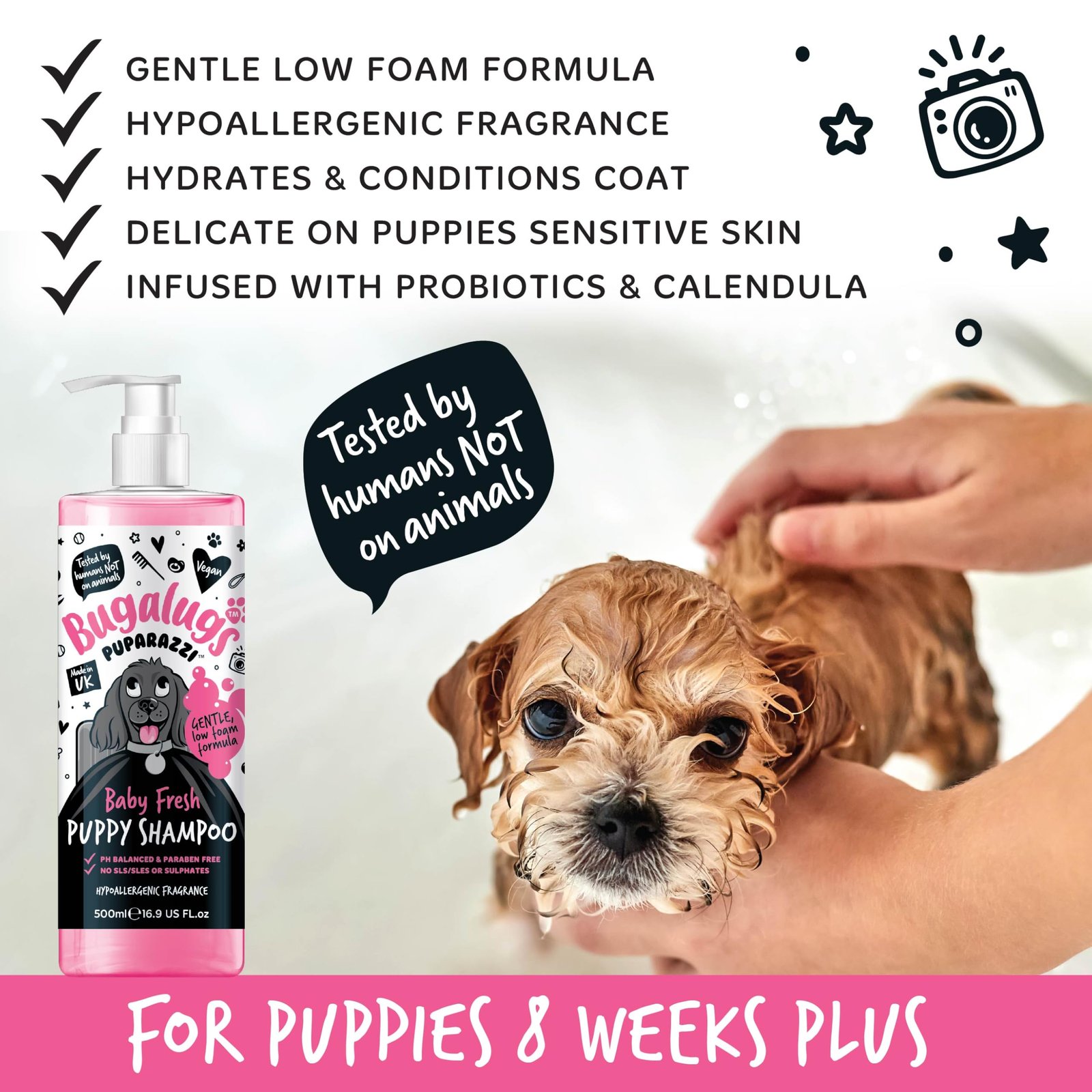 BUGALUGS Baby Fresh Dog Shampoo grooming products for smelly dogs with baby powder scent, Bugalug best puppy shampoo and conditioner for Dogs Sensitive Skin professional Pet (Puppy Shampoo 500ml)
